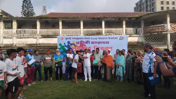 মোঃ লিটন হোসেন, ঝিনাইদহ জেলা প্রতিনিধিঃ জুলাই গণঅভ্যুত্থান দিবস উদযাপন উপলক্ষে ঝিনাইদহে প্রতীকী ম্যারাথন প্রতিযোগিতা অনুষ্ঠিত হয়েছে। শুক্রবার (১৮জুলাই) সকাল ৭ টায় ঝিনাইদহ জেলা প্রশাসকের কার্যালয়ের সামনে থেকে শুরু হয়ে