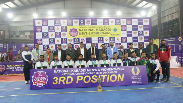 আলী আহসান রবি : ঢাকা, ০৩ জানুয়ারি ২০২৬ ‘তারুণ্যের উৎসব-২০২৫’ জাতীয় কাবাডি চ্যাম্পিয়নশিপের শেষ দিনে দাপুটে জয় পেয়েছে বর্ডার গার্ড বাংলাদেশ (বিজিবি) ও বাংলাদেশ পুলিশ। আজ শহীদ ক্যাপ্টেন এম. মনসুর