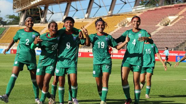 ৮ গোলের জয় বাংলাদেশের * শান্তির অলিম্পিক গোল * তৃষ্ণার হ্যাটট্রিক এই আমার দেশ ডেস্ক এএফসি অনূর্ধ্ব-২০ নারী ফুটবল টুর্নামেন্টে বাংলাদেশের জয়যাত্রা চলছেই। প্রথম ম্যাচে ৩-১ গোলে লাওসকে হারানোর পর