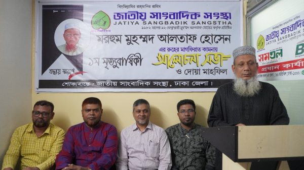নিজস্ব প্রতিনিধি: ১৯৮২ সালের ১২ই ফেব্রুয়ারি মহান সাংবাদিক ও সংগঠক মুহম্মদ আলতাফ হোসেন কর্তৃক প্রতিষ্ঠিত “জাতীয় সাংবাদিক সংস্থা”-র ঢাকা জেলা শাখার উদ্যোগে গতকাল রাজধানীতে মরহুম মুহম্মদ আলতাফ হোসেন এর ১ম