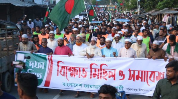 মোঃ রবিউল ইসলাম, ভ্রাম্যমাণ প্রতিনিধিঃ ঝিনাইদহের হরিণাকুণ্ডু উপজেলায় কেন্দ্র ঘোষিত পাঁচদফা দাবী বাস্তবায়নের দাবীতে হরিণাকুণ্ডু উপজেলা জামায়াতের আয়োজিত বিক্ষোভ সমাবেশে উত্তাল পরিবেশের সৃষ্টি হয় প্রিয়নাথ স্কুল অ্যান্ড কলেজ প্রাঙ্গন ।