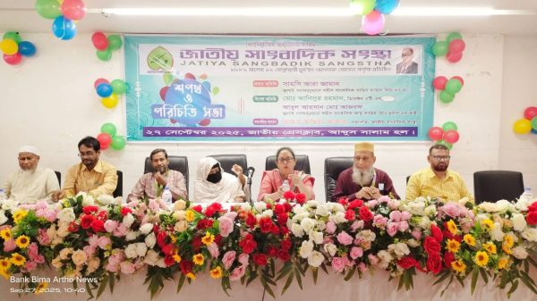 ঢাকা, ২৭ সেপ্টেম্বর ২০২৫ খ্রিঃ শনিবার ফারজানা ফারাবী, স্টাফ রিপোর্টারঃ জাতীয় সাংবাদিক সংস্থার ২০২৫-২০২৮ মেয়াদের নবনির্বাচিত কেন্দ্রীয় নির্বাহী পরিষদের শপথ গ্রহণ ও পরিচিতি সভা আজ সকাল ১০টায় জাতীয় প্রেসক্লাবের আব্দুস