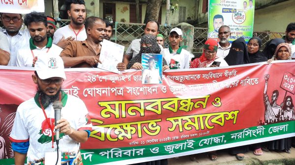 মো.শফিকুল ইসলাম মতি, নরসিংদী প্রতিনিধি : জুলাই সদনের আইনী বৃত্তি ছাড়া নির্বাচনের তারিখ ঘোষনা হলে রাজ পথে জবাব দেওয়া হবে বলে হুমিয়ারি দিয়েছেন জুলাই শহিদ স্বজন ও আহত জুলাই যোদ্ধারা।