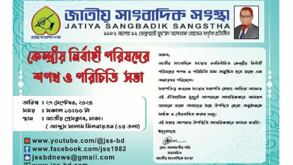 ঢাকা, ২১ সেপ্টেম্বর ২০২৫ ফারজানা ফারাবী, স্টাফ রিপোর্টারঃ জাতীয় সাংবাদিক সংস্থা (JATIYA SANGBADIK SANGSTHA) আগামী ২৭ সেপ্টেম্বর ২০২৫, শনিবার সকাল ১০.০০ ঘটিকায়, কেন্দ্রীয় নির্বাহী পরিষদের শপথ গ্রহণ ও পরিচিতি সভার