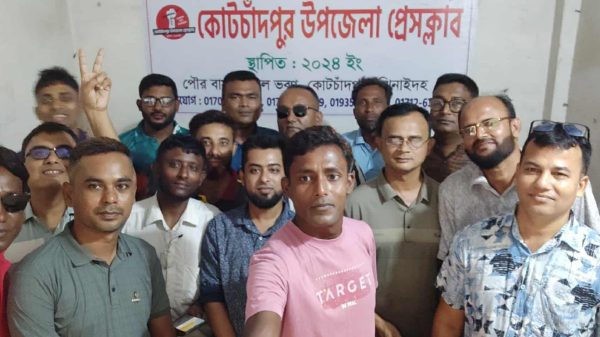 কোটচাঁদপুর সংবাদদাতা : ঝিনাইদহের কোটচাঁদপুর উপজেলা প্রেসক্লাবের পূর্ণাঙ্গ কমিটি ঘোষণা করা হয়েছে। শুক্রবার (১৯ সেপ্টেম্বর) সন্ধ্যায় প্রেসক্লাবের সাধারণ সভায় এই কমিটি গঠন করা হয়। গত ১৩ সেপ্টেম্বর অনুষ্ঠিত নির্বাচনে সভাপতি,