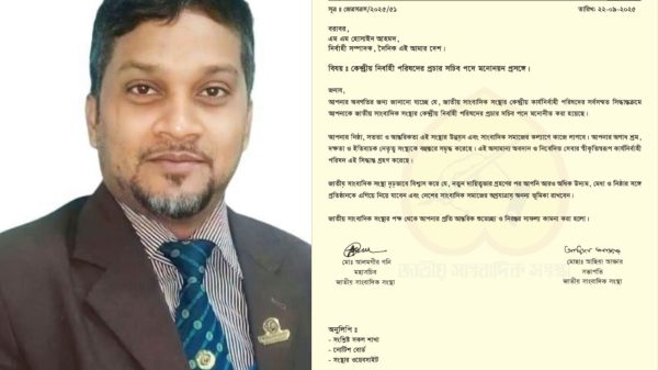 সংবাদ বিজ্ঞপ্তি : জাতীয় সাংবাদিক সংস্থা কেন্দ্রীয় নির্বাহী পরিষদের প্রচার সচিব পদে দৈনিক এই আমার দেশ পত্রিকার নির্বাহী সম্পাদক, এম হোসাইন আহমদকে মনোনীত করা হয়েছে। এ মনোনয়ন দেওয়ার জন্য তিনি