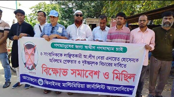 মোঃ রবিউল ইসলাম, ভ্রাম্যমাণ প্রতিনিধিঃ ঝিনাইদহের শৈলকুপায় একটি প্রাথমিক বিদ্যালয়ের অনিয়মের সংবাদ সংগ্রহে বাঁধা ও তিন সংবাদকর্মীকে লাঞ্ছিতের ঘটনায় মানববন্ধন ও বিক্ষোভ সমাবেশ করেছে সাংবাদিকরা। শুক্রবার (২৬ সেপ্টেম্বর) বেলা ১১টায়