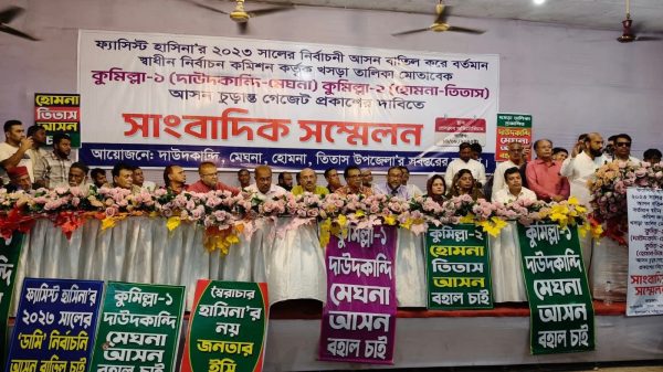 কুমিল্লা প্রতিনিধিঃ মোঃ রমিজ উদ্দিন : নির্বাচন কমিশন (ইসি) প্রস্তাবিত দাউদকান্দি ও মেঘনা উপজেলার সমন্বয়ে কুমিল্লা-১ এবং হোমনা ও তিতাস উপজেলার সমন্বয়ে কুমিল্লা-২ সংসদীয় আসনের সীমানা চূড়ান্ত করে গেজেট প্রকাশের