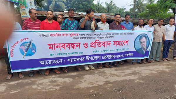 মোঃ রবিউল ইসলাম, ভ্রাম্যমাণ প্রতিনিধিঃ দৈনিক প্রতিদিনের কাগজের গাজীপুর প্রতিনিধি মোঃ আসাদুজ্জামান তুহিনের হ*ত্যার প্রতিবাদে মানববন্ধন ও প্রতিবাদ সমাবেশ অনুষ্ঠিত হয়েছে। শনিবার সকাল ১১ টায় শহরের পায়রা চত্বর এই মানববন্ধন