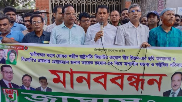 মোঃ রবিউল ইসলাম, ভ্রাম্যমান প্রতিনিধিঃ স্বাধীনতার মহান ঘোষক শহীদ রাষ্ট্রপতি জিয়াউর রহমান বীর উত্তম এর ছবি অবমাননা ও বিএনপির ভারপ্রাপ্ত চেয়ারম্যান তারেক রহমান কে নিয়ে অশালীন মন্তব্য ও কটুক্তির প্রতিবাদে