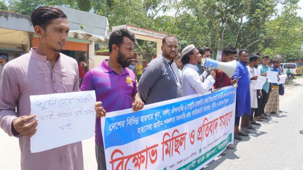 নিজস্ব প্রতিবেদক : সম্প্রতি রাজধানীর মিটফোর্ড এলাকায় ভাঙারি পণ্যের ব্যবসায়ী লাল চাঁদ সোহাগ কে পাথর নিক্ষেপ করে নৃশংসভাবে হত্যার বিচারের দাবিতে ও সারাদেশে চাঁদাবাজি, ধর্ষণ, মাদক, খুন ও হত্যাসহ আইনশৃঙ্খলা