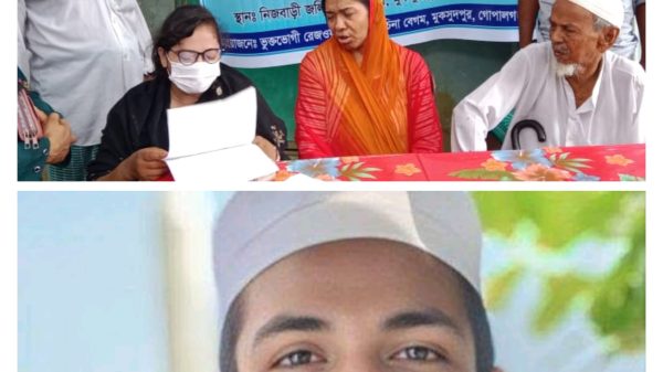 কাজী ওহিদ-গোপালগঞ্জ জেলা প্রতিনিধি : গোপালগঞ্জের মুকসুদপুর উপজেলার জলিরপাড় ইউনিয়নে পুত্রসন্তান রেজওয়ান ইসলাম (১৯)কে ফিরে পেতে এবং মানব পাচারকারী চত্রুের বিরুদ্ধে প্রশাসনের কাছে সর্বোচ্চ শাস্তির দাবীতে ১৬জুলাই বুধবার বেলা ১১টায়