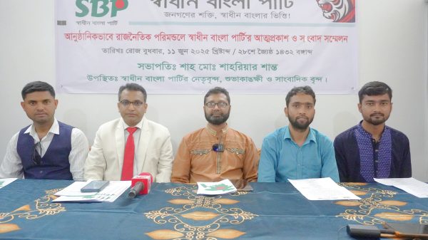 নিজস্ব প্রতিবেদকঃ“জনগণের শক্তি, স্বাধীন বাংলার ভিত্তি” — এই মূল স্লোগানকে সামনে রেখে স্বাধীন বাংলা পার্টি ১১ জুন ২০২৫, বুধবার সন্ধ্যায় রাজধানীর শাহবাগ সংস্কৃতি বিকাশ কেন্দ্রে আনুষ্ঠানিকভাবে আত্মপ্রকাশ করে। এ উপলক্ষে