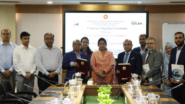 আলী আহসান রবি : ঢাকা, রবিবার, ১৪ সেপ্টেম্বর ২০২৫ বাংলাদেশ সেতু কর্তৃপক্ষের সম্মেলন কক্ষে বাংলাদেশ সেতু কর্তৃপক্ষের আওতাধীন পদ্মা সেতুর সার্ভিস এরিয়াসমূহে সোলার সিস্টেম স্থাপনের জন্য “বাংলাদেশ সেতু কর্তৃপক্ষ” এবং