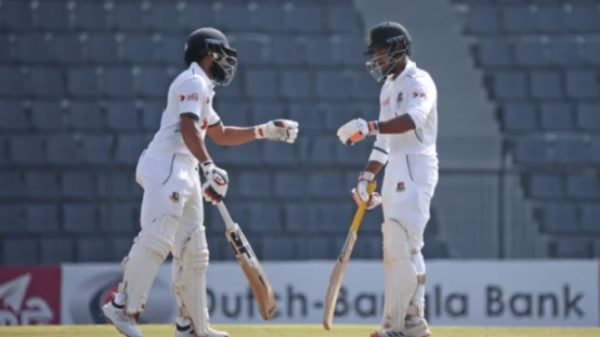 খেলাধুলা নিউজ : সিলেট টেস্টের দ্বিতীয় দিনের প্রথম সেশনটা পুরোপুরি নিজের করে নিয়েছে বাংলাদেশ। দিনের শুরুতে আয়ারল্যান্ডের শেষ দুটি উইকেট দ্রুত তুলে নেওয়ার পর ব্যাট হাতেও দুর্দান্ত সূচনা করেছেন দুই