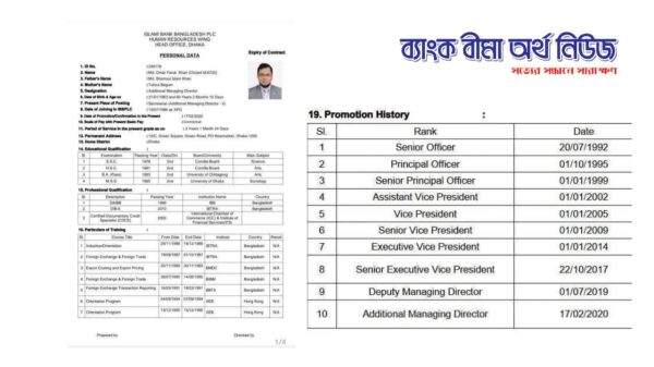 বিশেষ প্রতিনিধিঃ বাংলাদেশের ব্যাংকিং খাতে দীর্ঘদিন ধরে চলা পৃষ্ঠপোষকতা, স্বজনপ্রীতি ও অদক্ষতা আজও বড় একটি সংকট। সম্প্রতি এক শীর্ষস্থানীয় ইসলামী ব্যাংকের একজন উচ্চপদস্থ সিনিয়র কর্মকর্তা—যিনি বর্তমানে একজন অ্যাডিশনাল ম্যানেজিং ডিরেক্টর