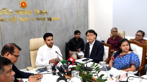 আলী আহসান রবি : ঢাকা, ১৬ সেপ্টেম্বর ২০২৫ আজ (মঙ্গলবার) বাংলাদেশ সচিবালয়ে স্থানীয় সরকার বিভাগের সভাকক্ষে অন্তর্বর্তীকালীন সরকারের স্থানীয় সরকার, পল্লী উন্নয়ন ও সমবায় মন্ত্রণালয়ের উপদেষ্টা আসিফ মাহমুদ সজীব ভূঁইয়া-