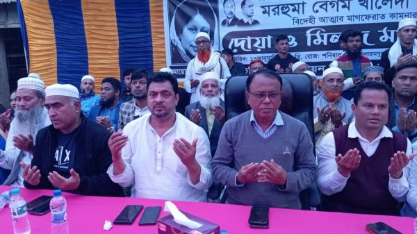 কুমিল্লা তিতাস, মোঃ রমিজ উদ্দিন : কুমিল্লার তিতাসে আপোষহীন দেশনেত্রী সাবেক প্রধানমন্ত্রী মরহুম খালেদা জিয়ার রুহের মাগফিরাত কামনায় দোয়া ও মিলাদ মাহফিল অনুষ্ঠিত হয়েছে। শনিবার (১৭ জানুয়ারি) বিকাল ৩ টায়