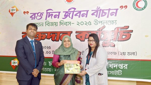 আলী আহসান রবি : ঢাকা, ৮ ডিসেম্বর, ২০২৫ মহান বিজয় দিবস ২০২৫ উপলক্ষ্যে চলচ্চিত্র ও প্রকাশনা অধিদপ্তরে (ডিএফপি) রক্তদান কর্মসূচি অনুষ্ঠিত হয়েছে। সোমবার (৮ ডিসেম্বর) সকাল ১০টায় চলচ্চিত্র ও প্রকাশনা