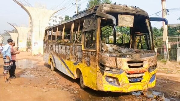 বিশেষ প্রতিনিধি : সাভারের আশুলিয়ায় আলিফ পরিবহণে একটি যাত্রীবাহী বাসে আগুন দিয়েছে দুর্বৃত্তরা। বুধবার (১২ নভেম্বর) ভোররাতে ঘটনার সময় বাসটি সরকার মার্কেট এলাকার নারী ও শিশু হাসপাতালের সামনে পার্কিং অবস্থায়