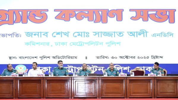 আলী আহসান রবি : ঢাকা, ৩০ অক্টোবর ২০২৫ ঢাকা মেট্রোপলিটন পুলিশ কমিশনার শেখ মোঃ সাজ্জাত আলী এনডিসি বলেছেন, আসন্ন জাতীয় সংসদ নির্বাচনে পুলিশকে শতভাগ নিরপেক্ষভাবে দায়িত্ব পালন করতে হবে। কোন
