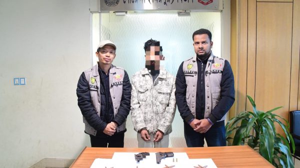 আলী আহসান রবি : ঢাকা, ৩০ ডিসেম্বর ২০২৫ রাজধানীর পল্লবী এলাকায় অভিযান চালিয়ে একটি বিদেশি রিভলভার, দুই রাউন্ড গুলিভর্তি ম্যাগাজিনসহ একটি বিদেশি পিস্তল এবং বিপুল পরিমাণ গুলি উদ্ধারসহ চিহ্নিত এক