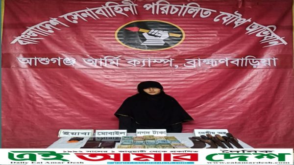 মোঃ ফারুক আহাম্মেদ, স্টাফ রিপোর্টার: ব্রাহ্মণবাড়িয়া খাঁটিহাতা (বৃহস্পতিবার ১১সেপ্টেম্বর) তারিখের ২২১৫ ঘটিকার সময় সিভিল সোর্সের তথ্যের ভিত্তিতে, আশুগঞ্জ আর্মি ক্যাম্প কমান্ডার, ক্যাপ্টেন ইমরন মাসুম সাব্বির এর নেতৃত্বে সেনাবাহিনীর যৌথ অভিযান