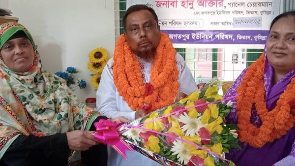 তিতাস (কুমিল্লা) প্রতিনিধি, মোঃ রমিজ উদ্দিন : কুমিল্লার তিতাস উপজেলার জগতপুর ইউনিয়নের মাসিক সভায় সদ্য শপথ নেওয়া ৬ নং ওয়ার্ডের সদস্য মো.খোকন মিয়ার যোগদান। আজ বৃহস্পতিবার জগতপুর ইউনিয়ন পরিষদে ভারপ্রাপ্ত