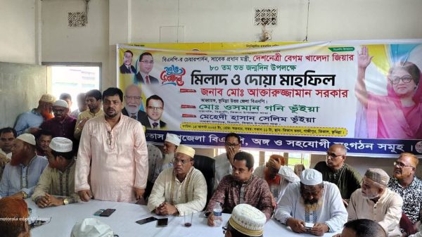 কুমিল্লা প্রতিনিধি, মোঃ রমিজ উদ্দিন : কুমিল্লার তিতাসে বিএনপির চেয়ারপার্সন ও সাবেক প্রধানমন্ত্রী দেশনেত্রী বেগম খালেদা জিয়ার ৮০ তম শুভ জন্মদিন উপলক্ষে মিলাদ ও দোয়া মাহফিল অনুষ্ঠিত হয়েছে। উপজেলা বিএনপি