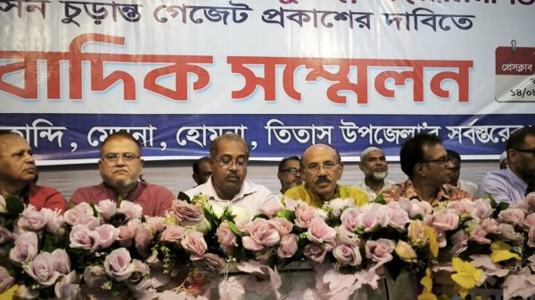কুমিল্লা প্রতিনিধিঃ মোঃ রমিজ উদ্দিন : কুমিল্লার তিতাসে নিহত নজরুল ইসলাম ভূইয়ার হত্যাকারীদের ফাঁসির দাবিতে মানববন্ধন ও বিক্ষোভ সমাবেশ অনুষ্ঠিত হয়েছে। গতকাল বুধবার সকাল সাড়ে ১০টায় সর্বস্তরের জনগণের আয়োজনে সহস্রাধিক