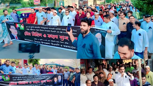 তিতাস প্রতিনিধি, মোঃ রমিজ উদ্দিন : দেশে জুলাই গণ-অভ্যুত্থানে আওয়ামী ফ্যাসিস্ট সরকারের হাতে নিহত সকল শহীদদের স্মরণে মৌন মিছিল ও কালো ব্যাজ ধারণ কর্মসূচি পালন করেছে তিতাস উপজেলা বিএনপি ও