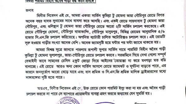 কুমিল্লা তিতাস, মোঃ রমিজ উদ্দিন : হোমনা টু কুমিল্লা ভায়া গৌরীপুর রোডে পারমিট বিহীন রুপালী সুপার সার্ভিস নামে একটি পরিবহনের মোট ৪০ টি ঢাকার রেজিষ্ট্রেশন মিনিবাস চলাচলের সকল প্রস্তুতি সম্পন্ন