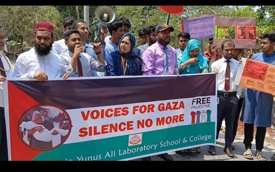 চৌহালী প্রতিনিধি, আবদুল আলিম : সিরাজগঞ্জের চৌহাল উপজেলার এনায়েতপুরে খাজা ইউনুস আলী ল্যাবরেটরী স্কুল এন্ড কলেজ কর্তৃক ইসরাইলের আগ্রাসনের বিরুদ্ধে মানববন্ধন ও বিক্ষোভ মিছিল অনুষ্ঠিত হয়েছে। সোমবার ৭ এপ্রিল সকাল