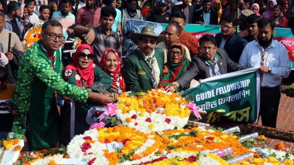 প্রতিবছরের ন্যায় আজ মঙ্গলবার ১৬ ডিসেম্বর ২০২৫ মহান বিজয় দিবস উপলক্ষে বাংলাদেশ স্কাউট অ্যান্ড গাইড ফেলোশিপ (বিএসজিএফ)-এর উদ্যোগে জাতির শ্রেষ্ঠ সন্তানদের প্রতি গভীর শ্রদ্ধা জানিয়ে জাতীয় স্মৃতিসৌধে পুষ্পস্তবক অর্পণ করা হয়েছে।