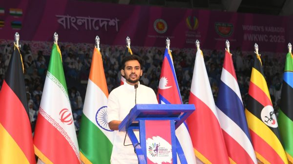 সোমবার ১৭ নভেম্বর ২০২৫ রাজধানীর শহীদ সোহরাওয়ার্দী ইনডোর স্টেডিয়ামে অন্তর্বর্তীকালীন সরকারের যুব ও ক্রীড়া মন্ত্রণালয় এবং স্থানীয় সরকার, পল্লী উন্নয়ন ও সমবায় মন্ত্রণালয়ের উপদেষ্টা আসিফ মাহমুদ সজীব ভূঁইয়া- “২য় নারী