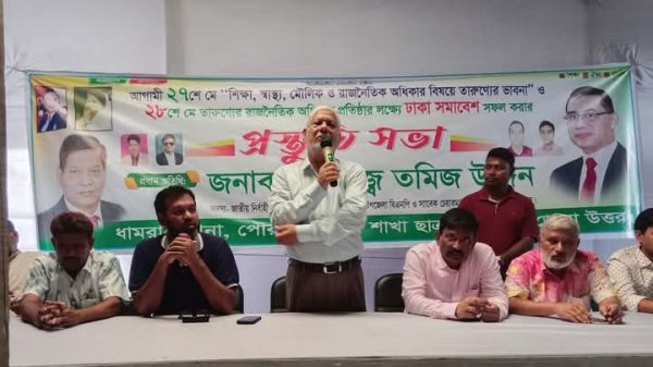 খালেকুজ্জামান( ঢাকা), ধামরাই প্রতিনিধি : ২৮ শে মে তারুণ্যের রাজনৈতিক অধিকার প্রতিষ্ঠার লক্ষ্যে ঢাকা সমাবেশ সফর করার প্রস্তুতি সভার প্রধান অতিথি হিসেবে বক্তব্য রাখেন ধামরাই উপজেলা বিএনপির সভাপতি ও বিএনপির