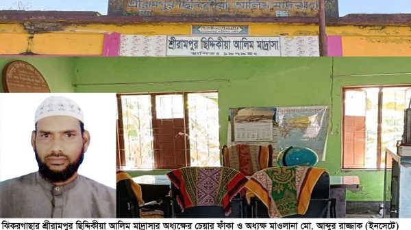 আফজাল হোসেন চাঁদ, ঝিকরগাছা : যশোরের ঝিকরগাছা উপজেলার ৬নং ঝিকরগাছা ইউনিয়নের শ্রীরামপুর ছিদ্দিকীয়া আলিম মাদ্রাসাটি ১৯৭৯ ইং সালে স্থাপিত। উক্ত মাদ্রাসায় ০১/০১/১৯৮৭ইং সালে যোগদান করেন মাওলানা মো. আব্দুর রাজ্জাক। তিনি