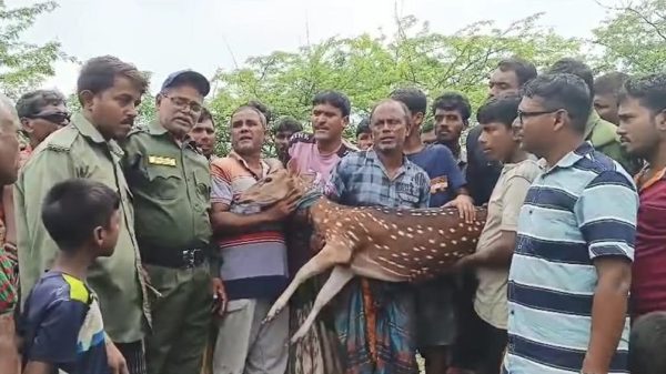 শ্যামনগরে লোকালয়ে সুন্দরবনের হরিণ, বনবিভাগের কাছে হস্তান্তর আল-হুদা মালী শ্যামনগর প্রতিনিধি: চোরা শিকারীদের ধাওয়া খেয়ে সুন্দরবন থেকে লোকালয়ে চলে আসা একটি হরিণ উদ্ধার করে বনবিভাগের কাছে হস্তান্তর করেছে স্থানীয়রা। পরে