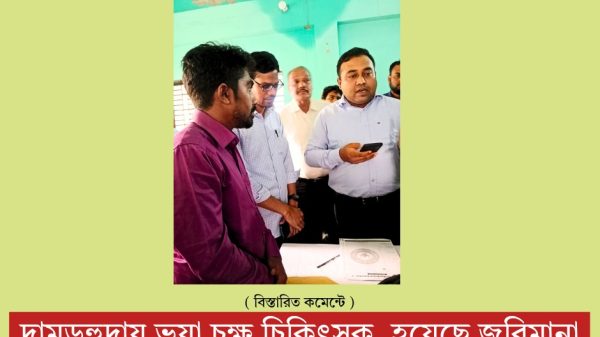 হাসমত আলী, দামুড়হুদা (চুয়াডাঙ্গা) প্রতিনিধি : চুয়াডাঙ্গার দামুড়হুদায় তাজমুল হোসেন নামে এক ভুয়া চক্ষু চিকিৎসক ও বাইতুল অজুল নামের প্রতিষ্ঠানটিকে জরিমানা করেছেন ভ্রাম্যমাণ আদালত। আজ সোমবার (৮ জুলাই) দুপুরে দামুড়হুদা