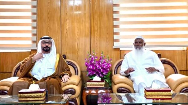 আলী আহসান রবি : ঢাকা, মঙ্গলবার (২৪ ফেব্রুয়ারি ২০২৬): ধর্মমন্ত্রী কাজী শাহ মোফাজ্জাল হোসাইন (কায়কোবাদ) এর সঙ্গে সৌজন্য সাক্ষাৎ করেছেন ঢাকায় সংযুক্ত আরব আমিরাতের রাষ্ট্রদূত আব্দুল্লাহ আলী আলহামুদি। আজ