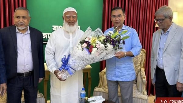 আলী আহসান রবি : রোববার, ১৫ ফেব্রুয়ারি, ২০২৬ ত্রয়োদশ জাতীয় সংসদ নির্বাচনে নিরঙ্কুশ বিজয়ের পর জামায়াতে ইসলামীর আমির ডা. শফিকুর রহমানের সঙ্গে সাক্ষাতের জন্য তার বাসায় পৌঁছেছেন বিএনপি চেয়ারম্যান তাকে