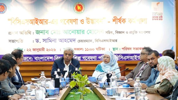 আলী আহসান রবি : ঢাকা, ২১ জানুয়ারি ২০২৬: বাংলাদেশ বিজ্ঞান ও শিল্প গবেষণা পরিষদ (বিসিএসআইআর)-এর গবেষণা ও উদ্ভাবন কার্যক্রম তুলে ধরে ‘বিসিএসআইআর-এর গবেষণা ও উদ্ভাবন’ শীর্ষক এক কর্মশালা আজ বৃহস্পতিবার