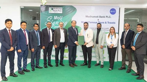 নিজস্ব প্রতিনিধিঃ মধুমতি ব্যাংক পিএলসি ও ওয়ার্ল্ড ফেমাস ট্যুরস অ্যান্ড ট্রাভেলসের মধ্যে একটি সমঝোতা চুক্তি গতকাল ব্যাংকের প্রধান কার্যালয়ে স্বাক্ষরিত হয়েছে। মধুমতি ব্যাংক পিএলসি ও ওয়ার্ল্ড ফেমাস ট্যুরস অ্যান্ড ট্রাভেলসের