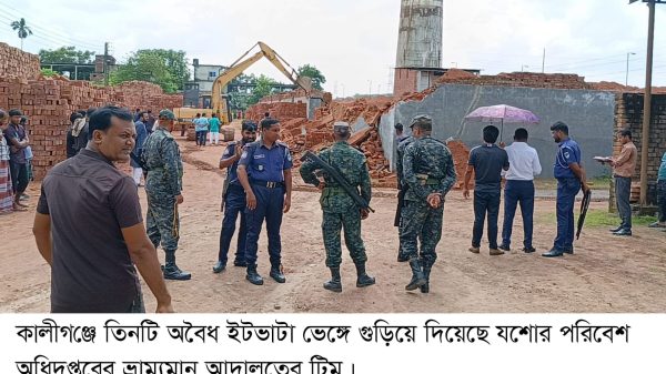 তাসনিম মুহসিন, কালীগজ্ঞ ঝিনাইদহ : ঝিনাইদহের কালীগঞ্জে পৌর এলাকার মধ্যে তিনটি অবৈধ ইটভাটা ভেঙ্গে গুড়িয়ে দিয়েছে যশোর পরিবেশ অধিদপ্তরের ভ্রাম্যমান আদালতের। বুধবার সকাল থেকে দুপুর পর্যন্ত তারা কালীগঞ্জ পৌর এলাকার