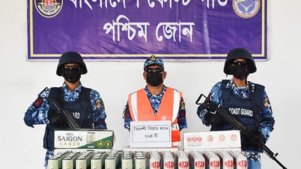 এম রোমানিয়া, খুলনা : ২২/০৭/২০২৫ মোংলা কোস্ট গার্ডের অভিযানে প্রায় ১ লক্ষ ৮৫ হাজার টাকা মূল্যের ২৬৪ ক্যান বিদেশি বিয়ার জব্দ। মঙ্গলবার ২২ জুলাই ২০২৫ তারিখ বিকালে কোস্ট গার্ড মিডিয়া