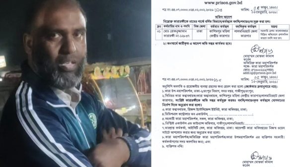 মোঃ আরমান হোসেন, গাজীপুর প্রতিনিধি : গাজীপুরের কাশিমপুর কেন্দ্রীয় কারাগার-এর সরকারি রেশন সামগ্রী কালোবাজারে বিক্রির অভিযোগে সংবাদ প্রকাশের পর অভিযুক্ত কারারক্ষী মোঃ রোকনুজ্জামান (বিপি- ১২৮৩৭) কে লালমনিরহাট জেলা কারাগারে বদলি