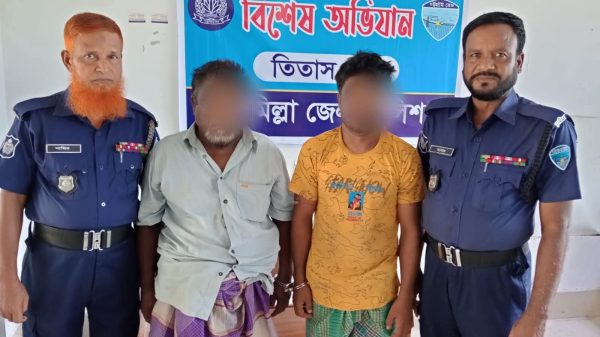 কুমিল্লা প্রতিনিধি, মোঃ রমিজ উদ্দিন : কুমিল্লার তিতাস উপজেলায় মাদকবিরোধী বিশেষ অভিযানে গাঁজাসহ গ্রেফতার হয়েছেন গাজীপুর এলাকার কুখ্যাত মাদক কারবারি মোরশেদ ও তার ছেলে মোশারফ। ২৩ আগস্ট ২০২৫ ইং, দিবাগত