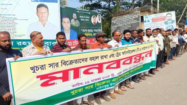 তারেক মাহমুূদ জয়, ঝিনাইদহ প্রতিনিধি: খুচরা সার বিক্রেতাদের বহাল রাখা ও টিও লাইসেন্স প্রদানের দাবিতে ঝিনাইদহের হরিণাকুন্ডু উপজেলা মোড় এলাকায় মানববন্ধন ও বিক্ষোভ কর্মসূচি অনুষ্ঠিত হয়েছে। রোববার সকালে খুচরা সার