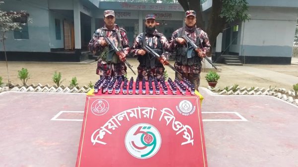 চাঁপাইনবাবগঞ্জ জেলার শিবগঞ্জ সীমান্তে মাদক চোরাচালান প্রতিরোধে সক্রিয় রয়েছে মহানন্দা ব্যাটালিয়ন (৫৯ বিজিবি)। মাদক চোরাকারবারীদের দৌরাত্ম্য পন্ডু করতে রাত-দিন নিরলসভাবে কাজ করছে এই ব্যাটালিয়নের সদস্যরা। এরই ধারাবাহিকতায় শিয়ালমারা বিওপি’র একটি বিশেষ টহল দল গতকাল ২৪ ডিসেম্বর ভোর ০৪:৪০ ঘটিকায় গোপন সংবাদের ভিত্তিতে উপজেলার সীমান্ত পিলার ১৮৯/মেইন হতে আনুমানিক ০১ কিলোমিটার বাংলাদেশের অভ্যন্তরে দাইপুকুরিয়া ইউনিয়নের জামাইপাড়া গ্রামে অভিযান চালিয়ে ফেন্সিডিল এর বিকল্প হিসেবে ব্যবহৃত ১০২ বোতল ভারতীয় নেশাজাতীয় সিরাপ (CHOCO+) আটক করতে সক্ষম হয়েছে। তবে অভিযান চলাকালীন চোরাকারবারীরা ঘনকুয়াশার সুযোগ নিয়ে পালিয়ে যায়। এ বিষয়ে বিজিবি’র পক্ষ হতে আইনি প্রক্রিয়ার কাজ চলমান রয়েছে। প্রসঙ্গত, এই ব্যাটালিয়ন বিগত কয়েক দিনে নিয়মিত সীমান্তে অভিযান চালিয়ে এ যাবৎ ৭২২ বোতল ফেন্সিডিল এর বিকল্প কয়েক ধরনের নেশাজাতীয় সিরাপ আটক করেছে।