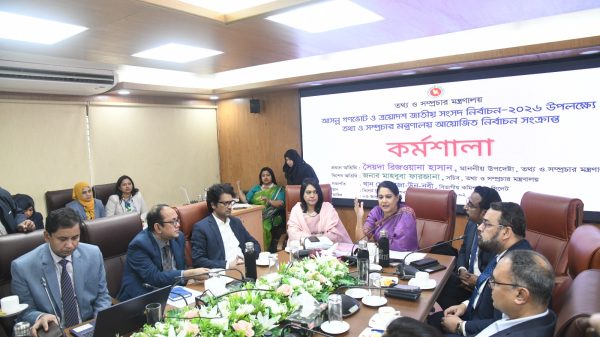 নির্বাচনী দায়িত্ব পালনে সমন্বয় বৃদ্ধির লক্ষ্যে আয়োজিত এ কর্মশালায় তথ্য ও সম্প্রচার মন্ত্রণালয়ের আওতাধীন দপ্তর ও সংস্থার কর্মকর্তাবৃন্দ, জেলা ও উপজেলা প্রশাসন, পুলিশ ও নির্বাচন কমিশনের কর্মকর্তাবৃন্দ, কলেজের অধ্যক্ষ, এনজিও প্রতিনিধি, মসজিদের ইমাম, ক্ষুদ্র নৃ-গোষ্ঠী সম্প্রদায় ও গণমাধ্যমকর্মীরা অংশগ্রহণ করেন।